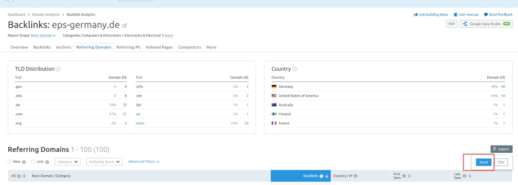 1.  先找到合适的竞争对手,比如想找德国外链资源,先找一家德国竞争对手(可以在谷歌中输入关键词选取排名靠前的公司),在semrush中输入域名查询